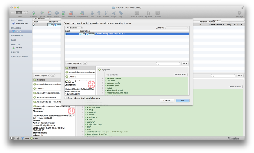 In our example, the Unity Test Tools repo is new and has only one commit on the stable branch. Here is an example of updating explicitly to that version: