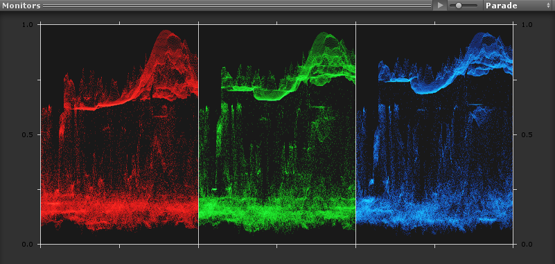 The Parade monitor is similar to the Waveform only it splits the image into red, green and blue separately.