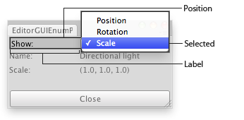 public class EditorGUIEnumPopup : EditorWindow { OPTIONS display = OPTIONS.Position;
