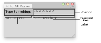 void OnGUI() { text = EditorGUI.PasswordField( new Rect(3, 3, position.width - 6, 20), "Type Something:", text);