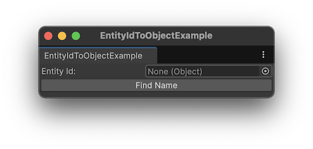 Editor Window to find an object, whose EntityId we will use to get and print the name of the object.