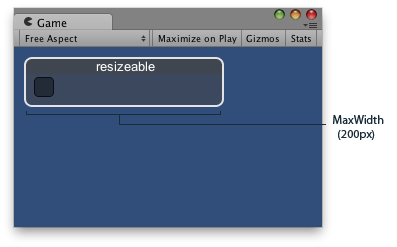 void OnGUI() { windowRect = GUILayout.Window(0, windowRect, ScalingWindow, "resizeable", GUILayout.MinHeight(80), GUILayout.MaxHeight(200)); }