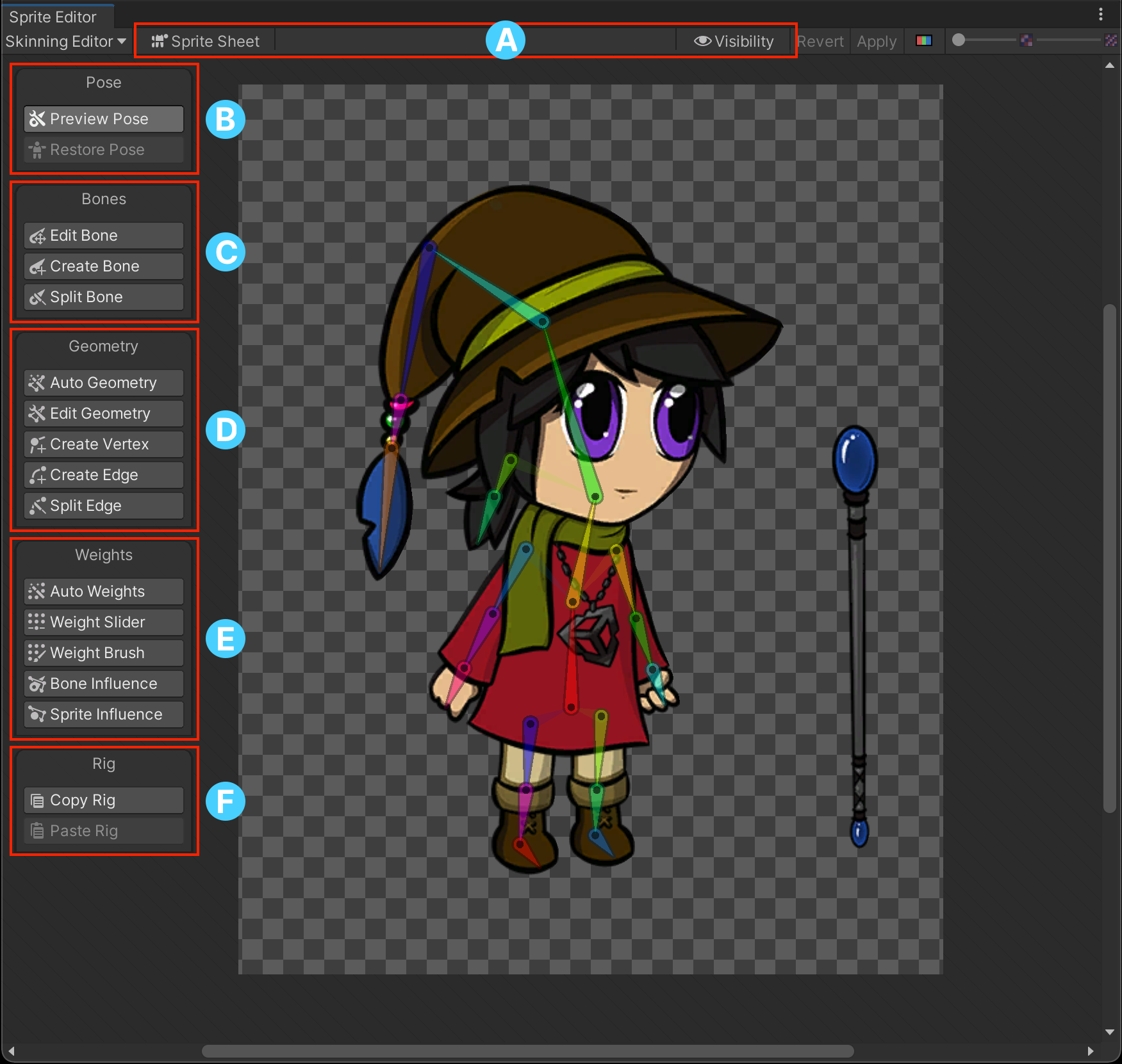 | Clear | Clear the weights of the selected Sprite, or of all Sprites if no specific Sprite is selected. |