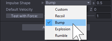 | Test with Force | Allows you to invoke the default impulse from the inspector (when playing) with the specified force multiplier, to see what it looks like. |