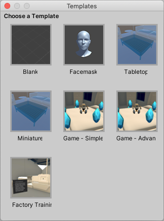 Currently, Unity MARS provides four basic templates and more advanced starter templates: