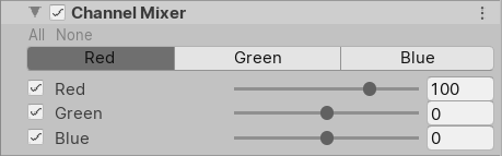 Channel Mixer uses the Volume framework, so to enable and modify Channel Mixer properties, you must add a Channel Mixer override to a Volume in your Scene. To add Channel Mixer to a Volume: