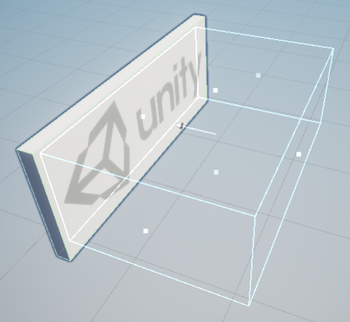 The Decal Projector includes a Scene view representation of its bounds and projection direction to help you position the projector. The Scene view representation includes:
