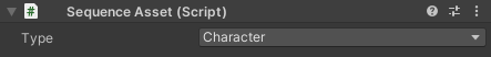| Type | The Asset Collection type the Sequence Asset belongs to. Note: Unity automatically assigns the value of this property when you create a Sequence Asset from the Asset Collections section of the Sequences window. You shouldn't change it unless you exactly know what you're doing. |