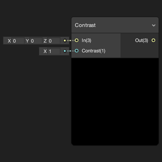 | Controls the amount each of the channels of input In contribute to each of the output channels. | Adjusts the contrast of input In by the amount of input Contrast. |