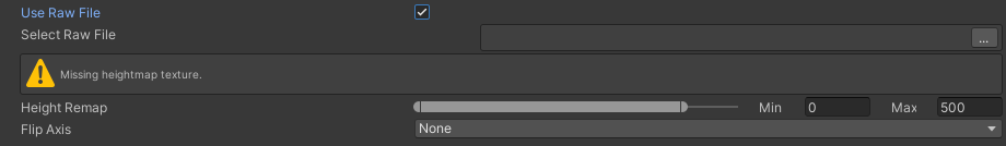 | Height Remap | Remaps the 0 and 1 values of the heightmap to minimum and maximum Terrain heights. |