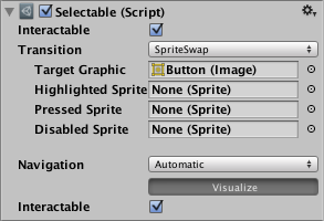 | Sprite Swap | Allows different sprites to display depending on what state the button is currently in, the sprites can be customised. |