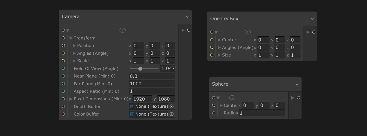 For Example, a Position type carries a Vector3 value and a Spaceable Property. If you set the Spaceable Property to Local [0,1,0], this tells the graph that we refer to the 0,1,0 value in local space.