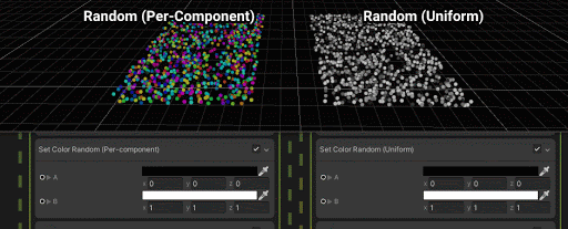 You can either set the value of the attribute directly, or use two different random modes, Uniform and Per-Component, to set the attribute to a random value.