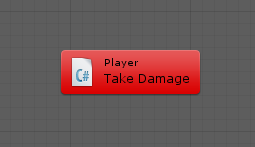 Visual scripting automatically calls methods, fields and properties from any custom script in the project. For example, you can create a unit from a custom Player class with a TakeDamage method.