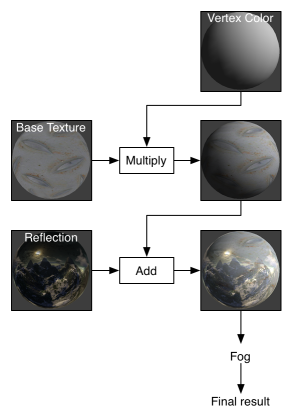 片元程序问世之前,较旧的显卡使用分层的纹理方法。这种方法逐一应用纹理,从而修改将写入屏幕的颜色。对于每个纹理,纹理通常与上一个运算的结果组合。而现在建议使用实际片元程序。