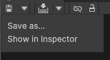 操作 : 使用此按钮可保存当前打开的 Visual Effect Graph 及其子图形。 下拉列表: • Save as…: 将 Visual Effect Graph 保存在指定的名称和/或位置下。 • Show in Inspector: 将 Visual Effect Graph 的资产聚焦在 Inspector 中。 |