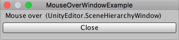void OnGUI() { GUILayout.Label("Mouse over:\n" + mouseOver); if (GUILayout.Button("Close")) { this.Close(); }