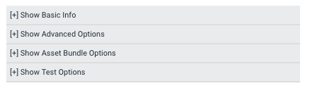 Oprima [+] Show Advanced Options, mostrada abajo. Esto muestra una lista desplegable de las Advanced Options del objetivo de construcción.