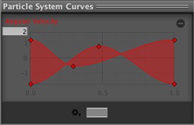 Curve 角速度は、パーティクルの生存時間中に変化するように設定する事ができます。インスペクター下部にあるカーブエディタを使って、パーティクルの生存時間中に速度がどう変化するかを制御できます (下の図 A を参照)。Separate Axes チェックボックスをチェックすると、 X, Y, Z 軸それぞれに、カーブした角速度を指定することが可能です。