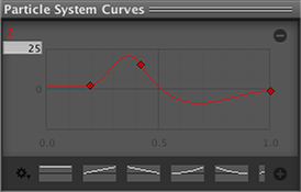 Curve 角速度は、パーティクルの生存時間中に変化するように設定する事ができます。インスペクター下部にあるカーブエディタを使って、パーティクルの生存時間中に速度がどう変化するかを制御できます (下の図 A を参照)。Separate Axes チェックボックスをチェックすると、 X, Y, Z 軸それぞれに、カーブした角速度を指定することが可能です。