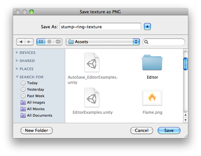 public class SaveFilePanelExample : EditorWindow { [MenuItem( "Example/Save Texture" )] static void Apply( ) { Texture2D texture = Selection.activeObject as Texture2D; if( texture == null ) { EditorUtility.DisplayDialog( "Select Texture", "You must select a texture first!", "OK" ); return; }