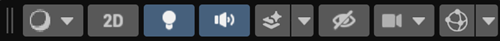 Draw Mode の右にボタンが 3 つあり、シーンビューのオプションのオン/オフを切り替えられます。
